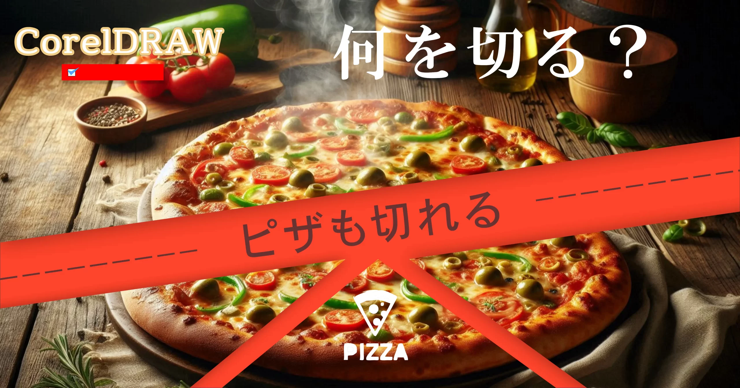 【CorelDRAWショート解説】ナイフツールで画像を斜めにカット。ピザも切れる