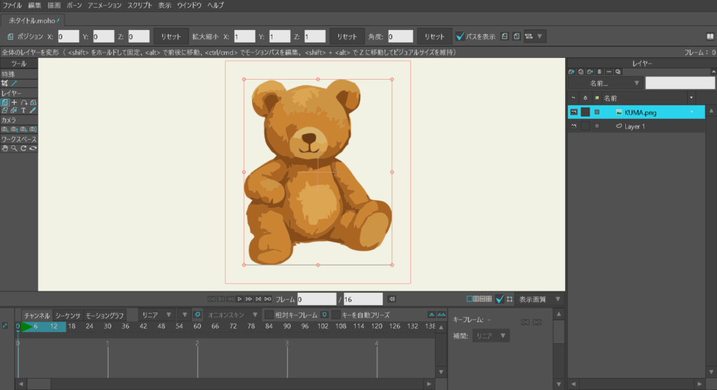 1. ボーンレイヤーを作成(名前は「KUMA ANIME」など)