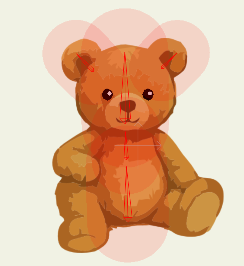 また、動かしたくない部分が変形してしまうときは、固定用のボーンを追加し、強めに設定することで安定させられます。(例:クマの足にボーンを追加しています)