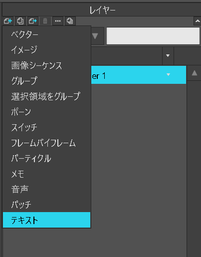 右側の レイヤーウィンドウ → 新規レイヤー → テキスト を選択します。