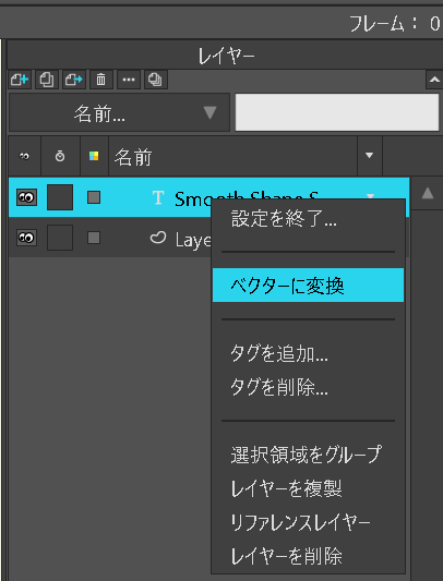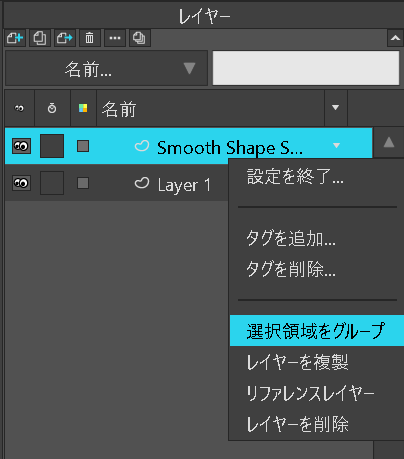 グループレイヤーの中で「新規レイヤー」→「ベクターレイヤー」を選択。