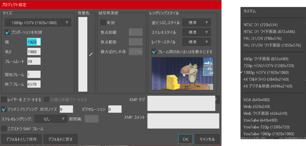 画面サイズやフレームレートは