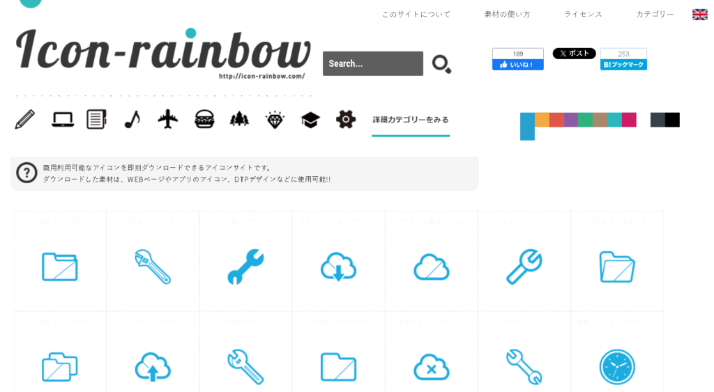 | icon-rainbow | シンプルでかわいいイラスト風アイコンが豊富 |