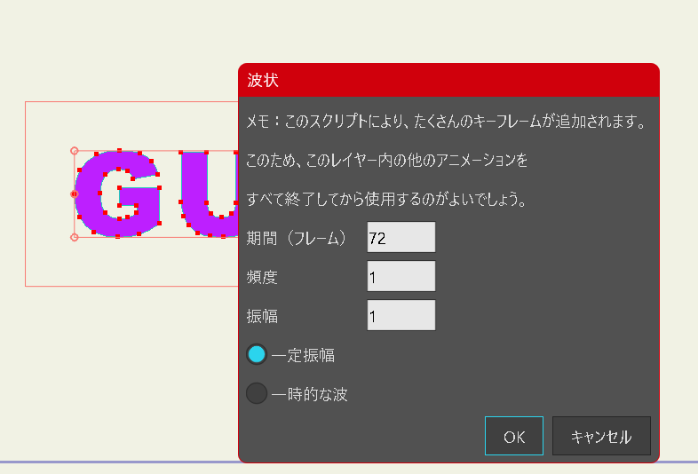 「メモ:このスクリプトにより、たくさんのキーフレームが追加されます。