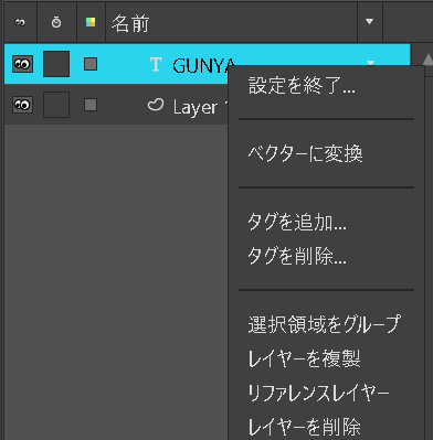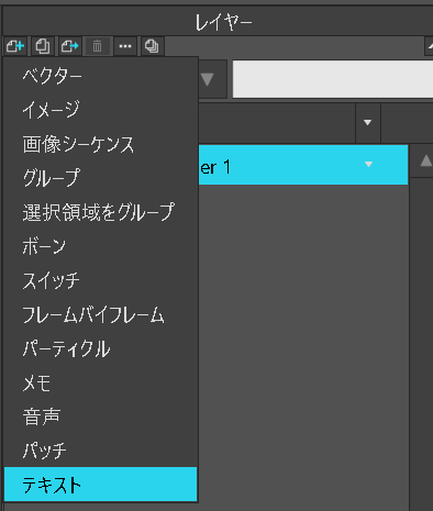 レイヤーウィンドウ → 新規レイヤー > テキスト